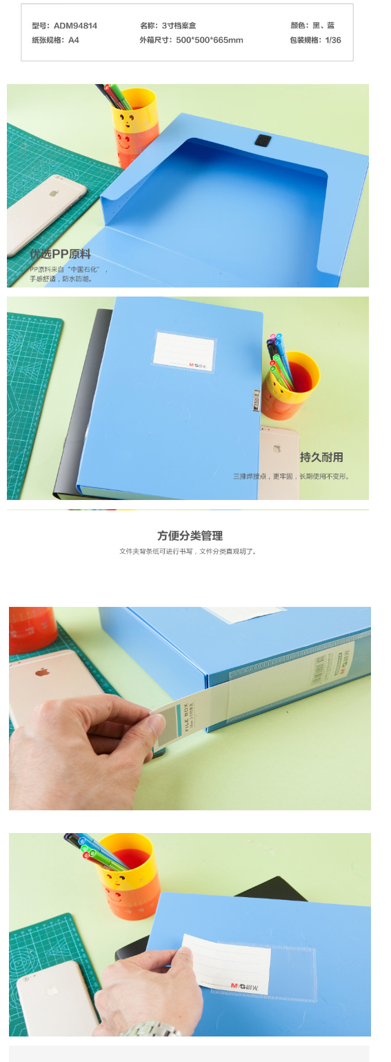 >晨光 (M&G) ADM94814 档案盒 经济型55mm蓝色档案盒