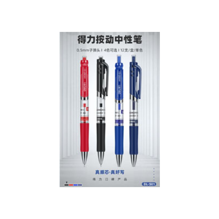 当前位置: 首页>文具>书写工具>中性笔>得力 (deli) S01 书写用笔类用具 0.5mm子弹头经典办公按动笔水笔 中性笔签字笔 12支/盒