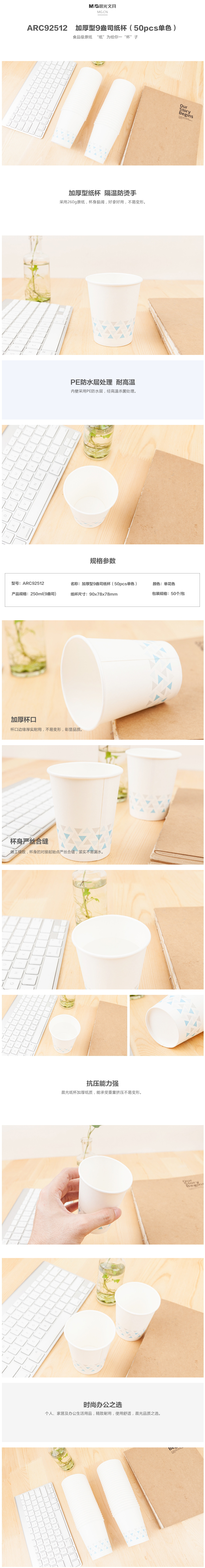 >晨光(M&G) ARC92512一次性纸杯 50pcs 加厚型9盎司 单色