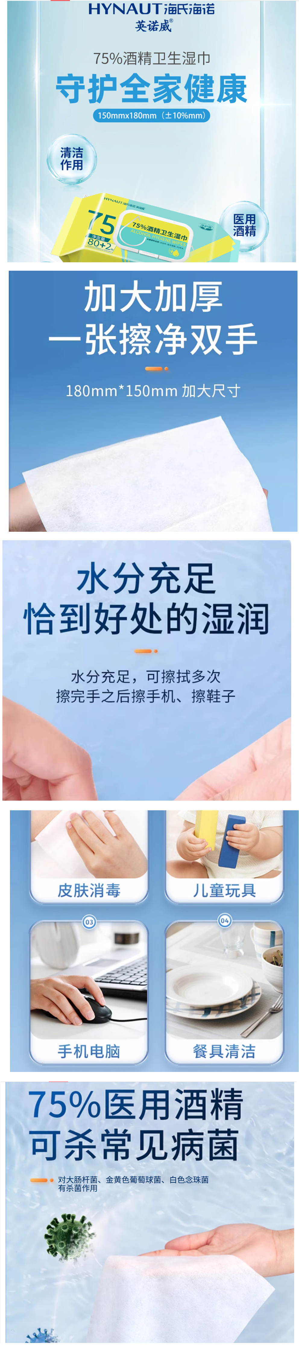 >海氏海诺 湿巾 75%酒精 湿纸巾办公便携消毒 湿巾